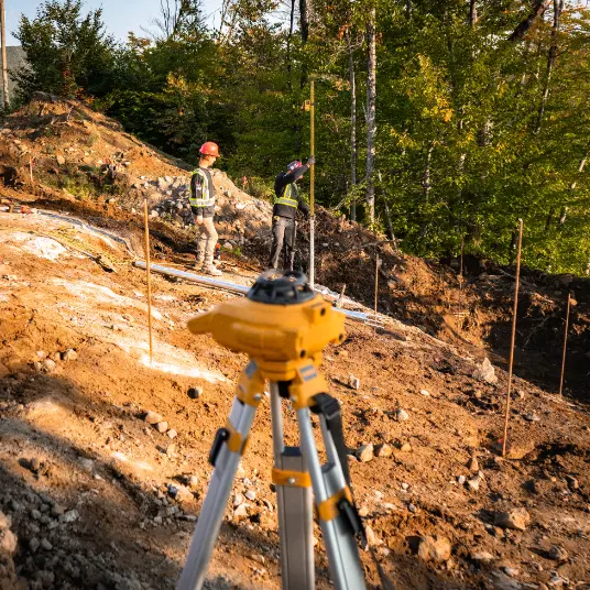 La première étape consiste à déneiger le site afin d’accéder au sol gelé. Différents équipements de déneigement peuvent être utilisés lorsque la couche de neige est très épaisse.